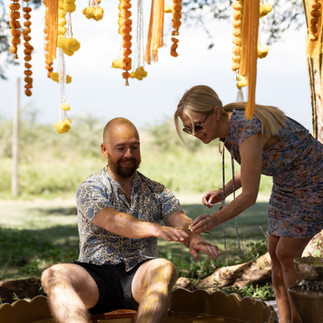 Every motif in her wedding lehenga tells a story: elephants representing both Ria's love for the animals and the Amboseli Park ecosystem where they married, on the border between Kenya and Tanzania. The location itself was chosen for its resonance—Ria's husband first came to Africa through Tanzania's Peace Corps, spending two years in a remote village before eventually making his way to Kenya and to her.